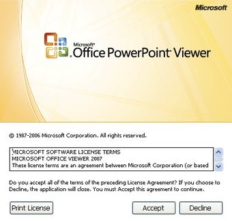 Microsoft PowerPoint Viewer 2007 เป็นซอฟต์แวร์ยูทิลิตี้ฟรีที่ช่วยให้คุณเปิดการนำเสนอ PowerPoint โดยไม่ต้องติดตั้ง PowerPoint หรือ Microsoft Office มันเป็นยูทิลิตี้ที่จำเป็นที่อนุญาตให้ดูการนำเสนอเท่านั้น; ไม่สนับสนุนการแก้ไขหรือปรับแต่ง การใช้งานทำงานร่วมกับการนำเสนอที่สร้างขึ้นใน PowerPoint 97 และเวอร์ชันที่ใหม่กว่า โดยมีข้อได้เปรียบที่สำคัญที่สุดคือความเข้ากันได้กับไฟล์ทั้งหมดจาก PowerPoint 97 เป็นต้นไป.